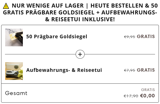 ⚠️ NUR WENIGE AUF LAGER | HEUTE BESTELLEN & 50 GRATIS PRÄGBARE GOLDSIEGEL + AUFBEWAHRUNGS- & REISEETUI INKLUSIVE!